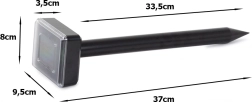 Zařízení je napájeno solárním panelem, takže nevyžaduje kabely ani výměnu baterií. Odolná, voděodolná konstrukce zajišťuje spolehlivý provoz po celou sezónu za různých povětrnostních podmínek. Instalace je otázkou chvilky – stačí jej zapíchnout do země a nechat pracovat.