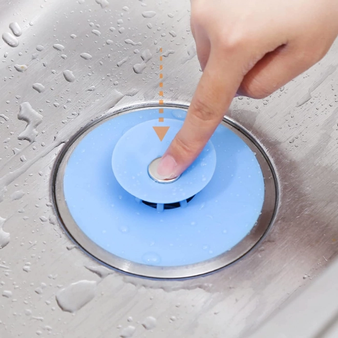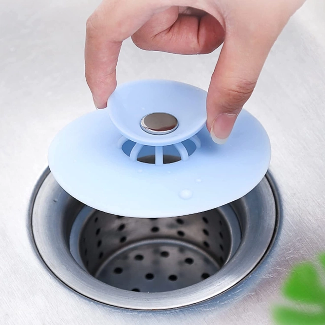 Silikonová zátka a sítko do dřezu a vany – Modrá