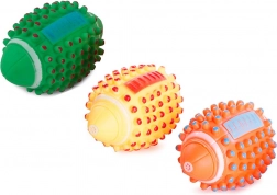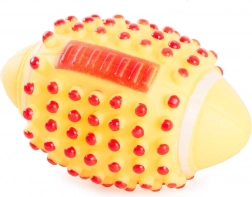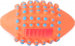 Rozežeňte nudu a dopřejte svému mazlíčkovi každodenní porci pohybu. Pískací gumový míč ve tvaru ragby je vyroben z odolné gumy a má výraznou texturu se špičkami, které usnadňují uchopení zuby i tlapkami. Při stlačení vydává atraktivní pískací zvuk, který motivuje ke hře a udržuje pozornost psa.