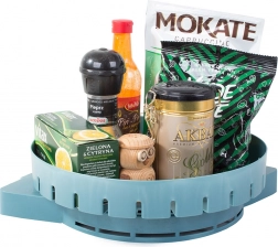 S pracovními rozměry 26 cm v průměru a celkovou výškou 7 cm, tento organizér nabízí moderní řešení skladovacích potřeb s možností zakoupení ve dvou barvách: modrá a žlutá.