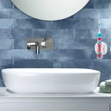 Tento nástěnný držák na elektrický zubní kartáček ušetří místo ve vaší koupelně. Snadná montáž pomocí průhledného lepidla.