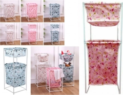 Koš je dostupný v několika barvách a vzorech: krémový vzor, růžová s plameňáky, a modrá s kaktusy.