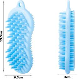 Kartáč má dvě funkční strany, jedna s hustými štětinami pro intenzivní masáž a druhá s jemnými štětinami pro důkladné mytí. Ergonomický tvar a rukojeť s otvorem pro zavěšení jsou navrženy pro maximální pohodlí a jednoduchou manipulaci.