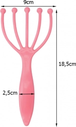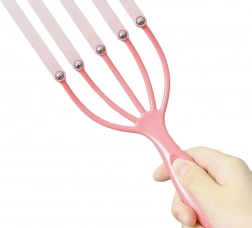 Kombinace plastu a kovu zajišťuje dlouhou životnost a spolehlivost. Masážní přístroj je vybaven pěti pružnými rameny, které končí kovovými kuličkami. Tato konstrukce umožňuje snadnou aplikaci pečujících přípravků na pokožku hlavy.