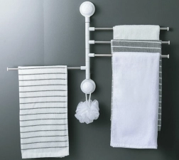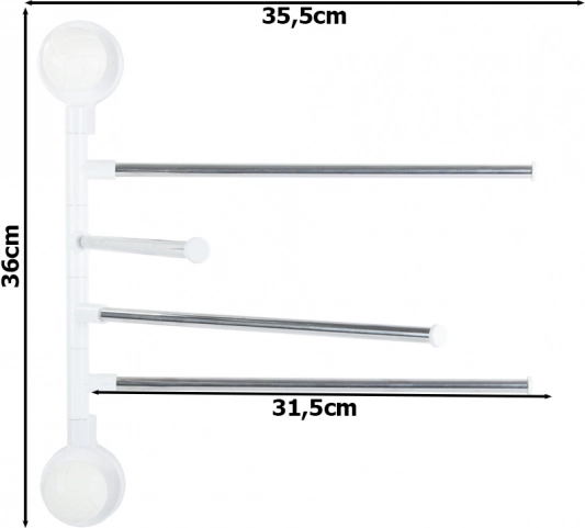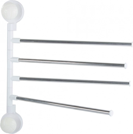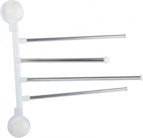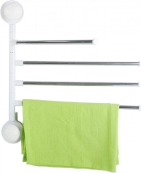 Praktický nástěnný držák na ručníky se čtyřmi výklopnými rameny zajistí, že budou vaše ručníky vždy po ruce a rychle uschnou. Každé rameno lze samostatně otočit, takže mezi ručníky cirkuluje vzduch a nevzniká zbytečný nepořádek. Minimalistická kombinace kovových tyčí a bílé plastové základny skvěle zapadne do moderních i klasických koupelen.