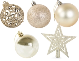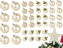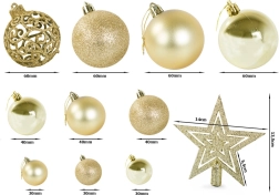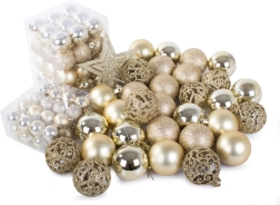 Sada zahrnuje ozdoby v různých velikostech a vzorech, které přinesou vašemu stromku noblesní vzhled.