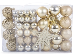 Tato sada vánočních ozdob kombinuje eleganci zlatých tónů a praktické vlastnosti nerozbitných plastových ozdob. Hodí se pro každého, kdo chce svého vánočního stromku dodat nádech luxusu bez starostí o bezpečnost. Plastové ozdoby jsou skvělé pro domácnosti s dětmi a domácími zvířaty, neboť jsou lehké a neroztříští se při pádu.