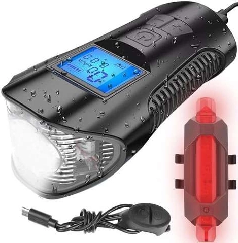 Tato praktická sada kombinuje výkonné přední LED světlo, kompaktní zadní svítilnu a cyklopočítač s bezdrátovým snímačem na špice. Díky tomu máte jistotu skvělé viditelnosti zepředu i zezadu a zároveň přesný přehled o jízdě – od aktuální a průměrné rychlosti až po ujetý čas a celkovou vzdálenost. Vestavěný klakson zvyšuje bezpečnost v městském provozu.