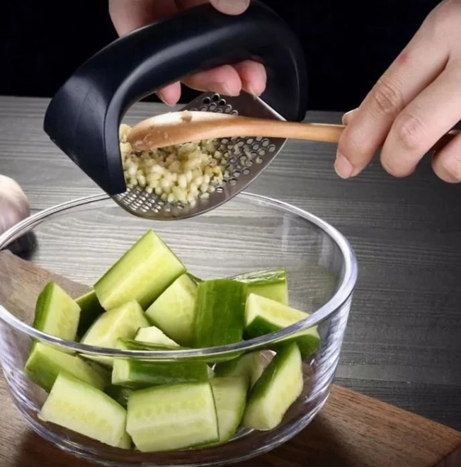 Užijte si intenzivní chuť čerstvého česneku bez námahy. Tento ergonomický lis s obloukovým tvarem rovnoměrně rozdrtí stroužky na jemnou pastu, kterou snadno přenesete přímo do pánve či mísy. Nerezová ocel odolává korozi a pachům, zatímco pohodlná rukojeť zaručí jistý úchop.