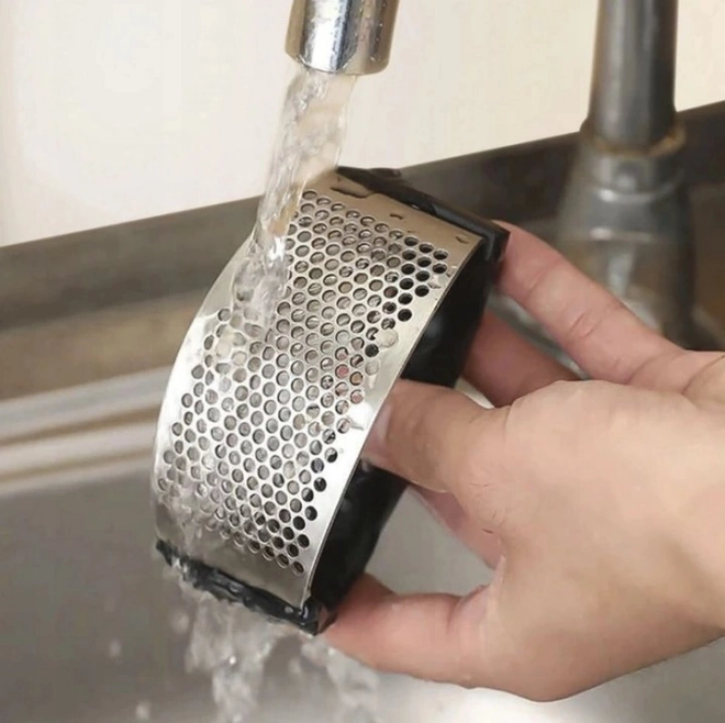 Díky jednoduché konstrukci se lis rychle čistí – stačí jej opláchnout pod tekoucí vodou nebo vložit do myčky nádobí. Skvěle se hodí i na bylinky, zázvor či drobnou zeleninu.