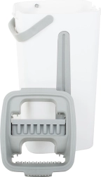 Mop zahrnuje inovativní dvoukomorové vědro, které odděluje čistou a špinavou vodu. Během ždímání rak rychle absorbuje nečistoty a vodu, což ho činí ještě účinnějším. Rukojeť mopu je skládací a protiskluzová, což umožňuje snadnou manipulaci a skladování.
