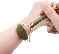 Nefritový váleček je oblíbená pomůcka pro domácí péči o pleť. Pravidelná masáž napomáhá lymfatické drenáži, zlepšuje prokrvení a přináší pleti zdravý jas. Větší váleček je ideální na čelo, tváře, bradu a krk, menší část oceníte kolem očí, nosu a úst. Pro zvýšení osvěžujícího efektu lze váleček před použitím krátce vychladit v lednici.