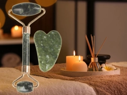 Nefrit přirozeně chladí, stahuje póry a pomáhá redukovat otoky. Pro extra účinek uložte nástroje před použitím na pár minut do lednice.