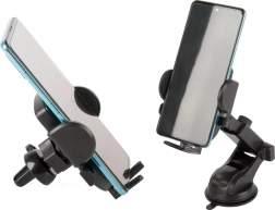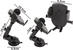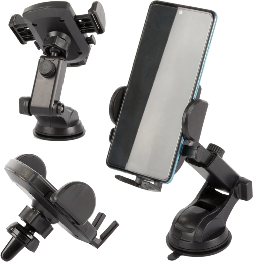 Držák na telefon do auta je navržen tak, aby poskytoval bezpečné a komfortní používání vašeho mobilního zařízení, zatímco řídíte. Montuje se jednoduše na čelní sklo nebo palubní desku vozidla a díky systému nastavitelných ramen je držák vhodný pro většinu telefonů a GPS zařízení.