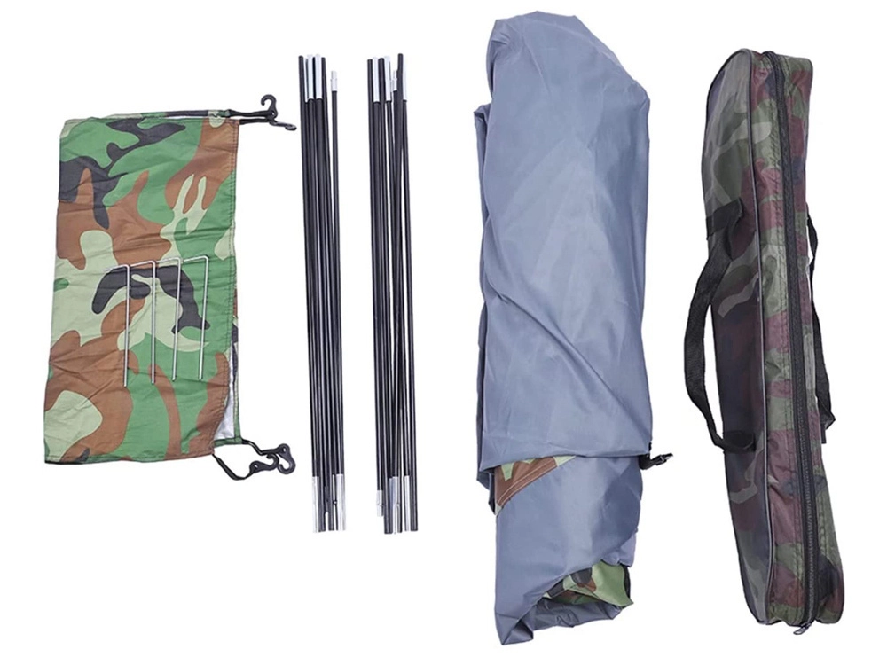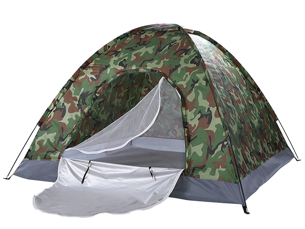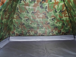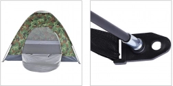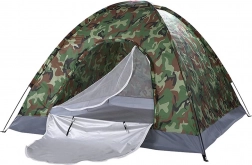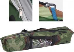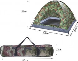 Univerzální turistický stan s kamuflážním designem je ideální na kempování, cyklovýlety, rybaření i víkendové pobyty v přírodě. Konstrukce z flexibilních prutů, zapínání na obousměrný zip a moskytiéra ve vchodu zajišťují pohodlné používání i v teplejších dnech. Vrchní větrací klapka podporuje cirkulaci vzduchu a lze ji překrýt při dešti.