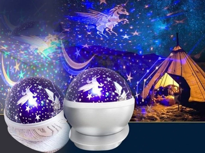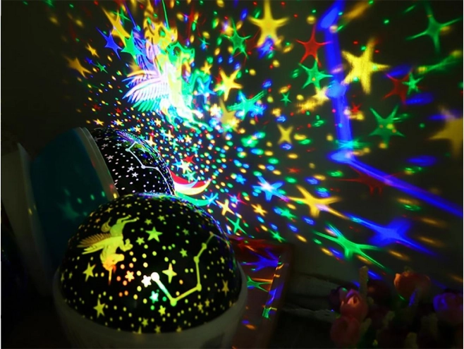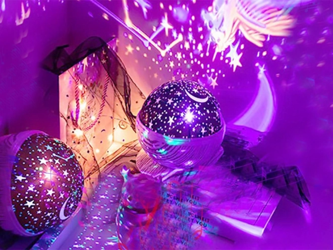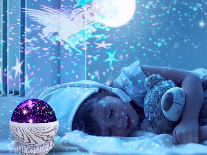 Projektor se plynule otáčí a promítá hvězdy a měsíc po celé místnosti, čímž vytváří poutavou a relaxační atmosféru pro spánek i odpočinek.