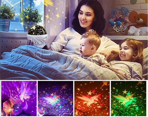 Tento stylový projektor promění strop a stěny v kouzelnou hvězdnou oblohu s měsícem. Díky rotaci o 360° vytváří dynamický, uklidňující efekt, který pomáhá dětem i dospělým snadněji usnout a relaxovat. Je skvělou dekorací i praktickým nočním světlem.