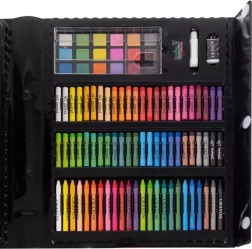 Sada obsahuje fixy, pastelky a olejové pastely ve široké škále barev - ideální pro každého, kdo rád experimentuje s barvami.