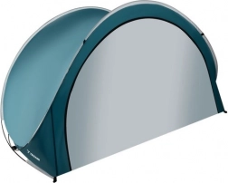 Dvojitý zip umožní vstup částečně či zcela uzavřít, takže uvnitř bezpečně uložíte věci bez písku a prachu. Odolný polyester a stabilní sklolaminátový rám zajišťují spolehlivost při větru, v balení nechybí sada kolíků, napínací šňůry a pouzdro pro přenášení.