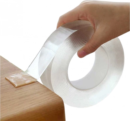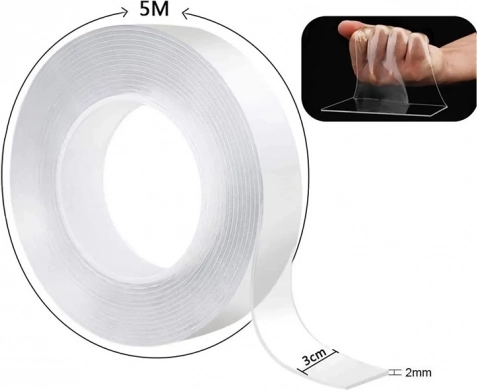 Oboustranná průhledná páska se velmi snadno nanáší. Stačí jemně očistit povrch, na který má být aplikována, a pásku přitlačit. Snadno ji lze odlepit a po umytí použít znovu, aniž by zanechala zbytky. Využijete ji ke zavěšení obrázků, různorodého kuchyňského náčiní i pro upevnění kabelů, lišt nebo koberců.