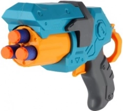 Balení obsahuje vše, co je potřeba ke hře: 1× pistole a 3× pěnový náboj. Pěnové šipky jsou měkké a bezpečné pro hru v interiéru i venku. Díky ergonomickému madlu pistole dobře sedí v ruce a děti si ji rychle oblíbí.