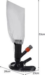 Ergonomická hlavice s tvrdým čisticím vlasem a půlměsícovým tvarem snadno kopíruje dno i hrany bazénu. Opakovaně použitelný sáček stačí po úklidu vysypat a znovu nasadit – žádné další náklady na spotřební materiál.
