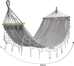 Užijte si klidný odpočinek venku i doma v pohodlné houpací síti GARDLOV o rozměrech 200 × 100 cm. Díky pevné bavlně s příměsí polyesteru, dřevěným rozpěrkám a nosnosti až 200 kg nabízí stabilitu, komfort a skvělou ventilaci i v horkých dnech. Pletené závěsné šňůry se postarají o bezpečné zavěšení, snadné sbalení do obalu zase o pohodlné přenášení na zahradu, balkon, terasu nebo k vodě.
